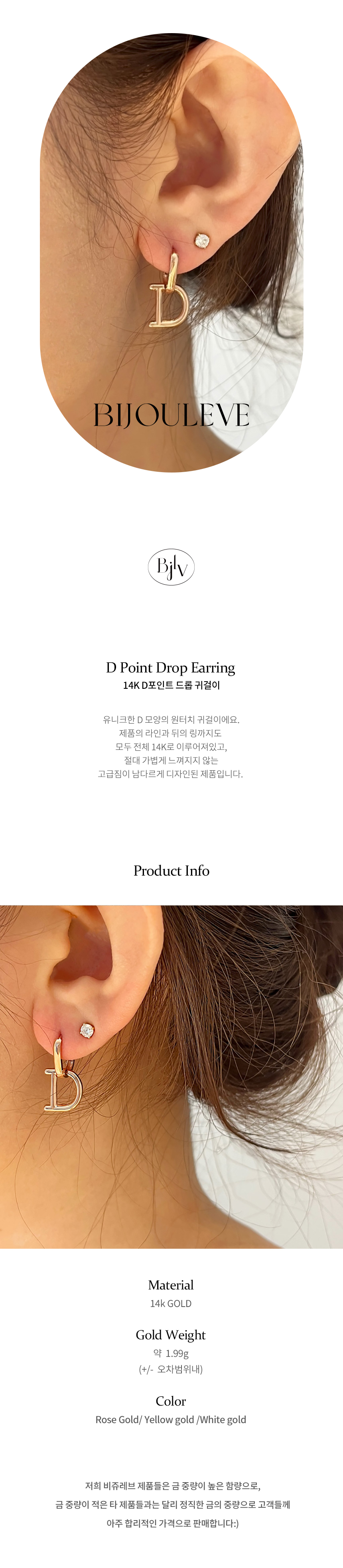 D 드롭 귀걸이 원터치링