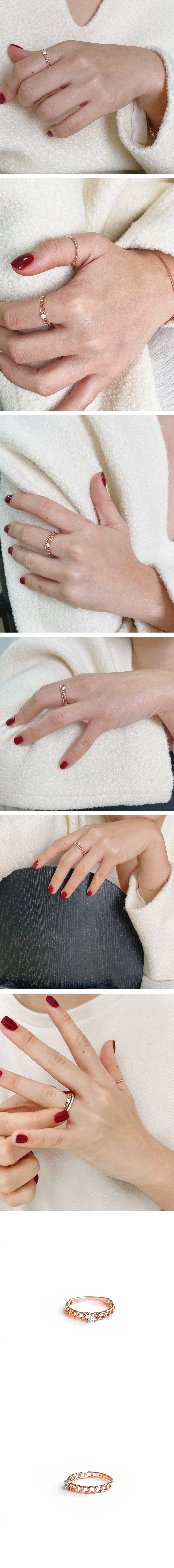 플랫 체인꼬임 스와로스브스키 반지
